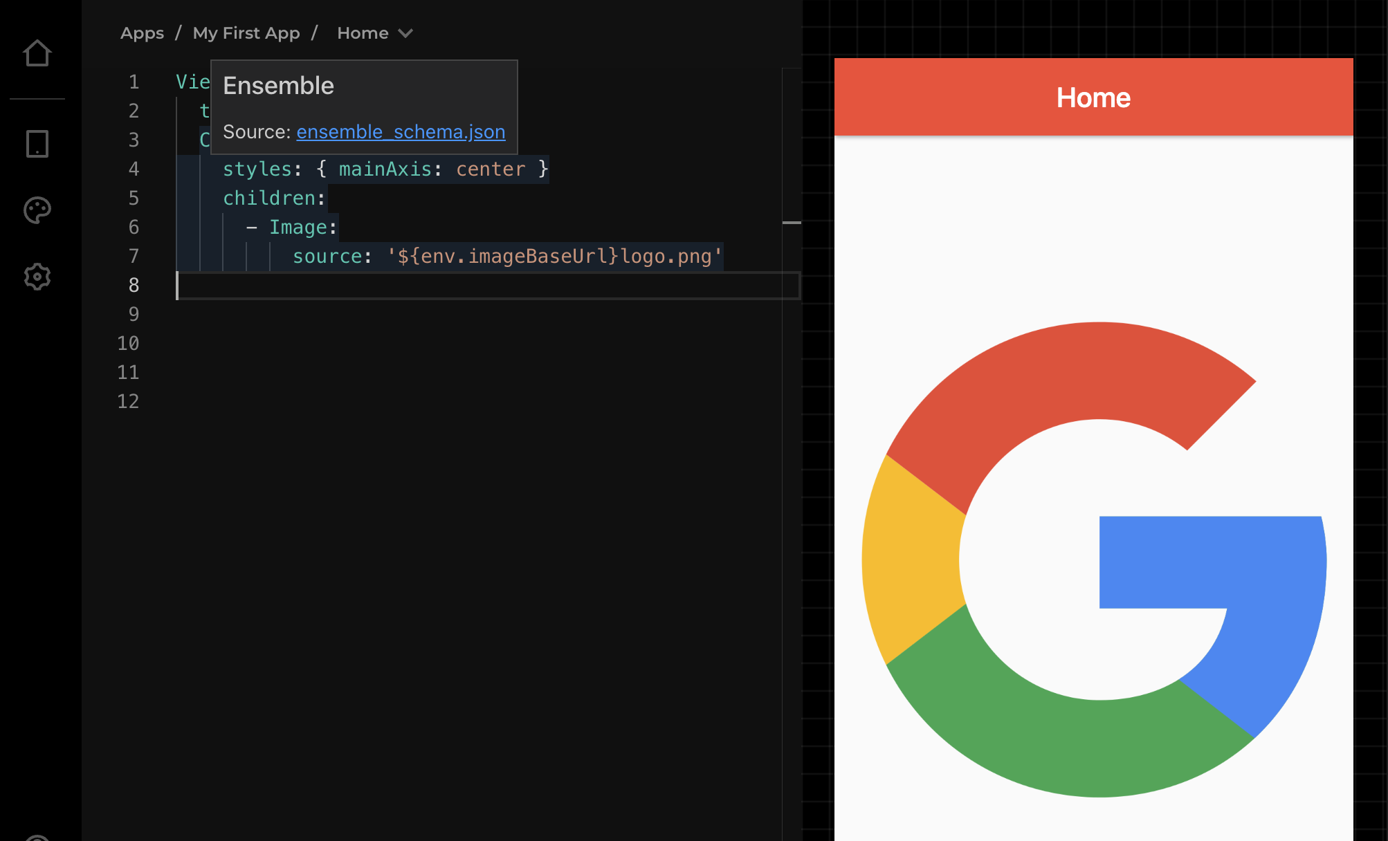 Any screens can reference the variable with ${env.variable_name}. Here we prefix the image with the imageBaseUrl. Add Environment Variable